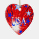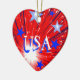 A firework exploding in a shower of dazzling blue and white stars against a blue sky. Ornament with a red, blue and white customisable design for you to personalise with your own text, pictures and ideas. Created using original photographs and digital techniques by Jess Perry.