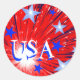A firework exploding in a shower of dazzling blue and white stars against a red and blue sky. Sticker with a red, blue and white customisable design for you to personalise with your own text, pictures and ideas. Created using original photographs and digital techniques by Jess Perry.