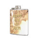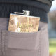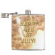 The flask itself is fine. It’s a cheap flask, obviously bought in bulk, however am prepared to overlook that. Given that it is a personalized item, I would have liked to have seen gift boxing instead of the generic packaging. Terrible printing, and/or quality. It’s a cheap, tacky vinyl. It is not cut straight and is also applied in a way that it is overhanging the bottom, causing the glue to catch on items and it will eventually roll and tear, damaging the wrap.