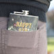 The flask itself is fine. It’s a cheap flask, obviously bought in bulk, however am prepared to overlook that. Given that it is a personalized item, I would have liked to have seen gift boxing instead of the generic packaging. Terrible printing, and/or quality. It’s a cheap, tacky vinyl. It is not cut straight and is also applied in a way that it is overhanging the bottom, causing the glue to catch on items and it will eventually roll and tear, damaging the wrap.