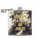 The flask itself is fine. It’s a cheap flask, obviously bought in bulk, however am prepared to overlook that. Given that it is a personalized item, I would have liked to have seen gift boxing instead of the generic packaging. Terrible printing, and/or quality. It’s a cheap, tacky vinyl. It is not cut straight and is also applied in a way that it is overhanging the bottom, causing the glue to catch on items and it will eventually roll and tear, damaging the wrap.