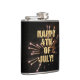 The flask itself is fine. It’s a cheap flask, obviously bought in bulk, however am prepared to overlook that. Given that it is a personalized item, I would have liked to have seen gift boxing instead of the generic packaging. Terrible printing, and/or quality. It’s a cheap, tacky vinyl. It is not cut straight and is also applied in a way that it is overhanging the bottom, causing the glue to catch on items and it will eventually roll and tear, damaging the wrap.