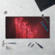 A desk mat featuring a photo of red fireworks.