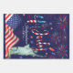 Fireworks Fourth Of July With The Statue Of Libert Wrapping Paper Sheets blue, red & white fireworks & American flag display set on a blue background with the Statue of Liberty to celebrate Independence Day. Happy 4th of July, Flip the back of our summer patriotic holiday invite over to view a matching back. Stylish invitation for a memorial day barbecue, 4th of July cookout, labour day party, or any patriot themed party.