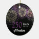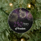 Commemorate two and a half centuries of American independence with the Fireworks Freedom 250 Years 4th of July Ornament. This classy quarter millennial semiquincentennial July 4th celebration keepsake features a photograph of purple fireworks bursting in the black summer night sky. This unique sestercentennial memorabilia is the perfect idea and inspo to honor this iconic once in a lifetime 1776 - 2026 Fourth of July holiday.