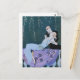 Fireworks in Paris Art Deco postcard. An art deco illustration by Georges Barbier. Fireworks in Paris features a romantic scene depicting a woman in a blue dress leaning lovingly into the arms of a young man in a tuxedo. The woman lifts a rose to his cheek as fireworks bloom above them. A cute gift for fans of art deco, Georges Barbier, and vintage fireworks prints.