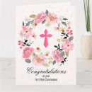Pink Watercolor Flowers Greenery First Communion Invitation