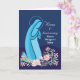 Celebrate with a Catholic nun on her first anniversary of her religious profession. Mary, our blessed mother, is seen in light blue, kneeling on a bed of roses. You can also personalise the front of this card with her name.