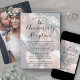 If unexpected circumstances have caused a postponement of your wedding reception, the first anniversary is a perfect opportunity to celebrate one year later. Invite family and friends to a simply elegant 1st anniversary party with this stylish modern 2 photo overlay invitation. All wording is simple to personalize for any number of years or event type, including a vow renewal ceremony, post elopement party, sequel wedding celebration, cocktail hour or dinner party. Customize it to include the details of your choice, such as marriage date, dress code, rsvp, website, etc. (IMAGE PLACEMENT TIP: An easy way to center a photo exactly how you want is to crop it before uploading to the Zazzle website.) The modern minimalist black and white design features two pictures of the newlywed couple, trendy handwritten script calligraphy, and chic typewriter style typography. Whether you eloped, had a smaller downsized minimony or micro wedding, or your special day celebration had to be rescheduled due to a covid pandemic related postponement, the happily ever after party can still get started. Congratulations to the bride and groom!