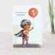 Cute personalised birthday card for any age. Just personalise the balloon with the number required. It's perfect for first birthdays because the illustration is a baby in a superhero costume. Illustrated and designed by Patricia Alvarez.
