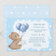 Celebrate your child's first birthday with this customized bear birthday invitation. This cute bear is holding colorful balloons with the number 1 on them. Invitation has (Child's name) is turning 1. Customize with your party details.
