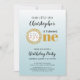 If your child was born between July 23 and August 22, then he has Leo as his astrological sun sign. The zodiac symbol for Leo is the lion; and we've literally displayed a charming little lion face as the "O" in "One" on our cute first Leo birthday party invitations. Lions have golden manes, so we've featured gold along with classic black in the text. The background is an aqua blue ombre, with the colour chosen from the lion graphic itself. The back of the card gives you an entire lion on the same ombre background.