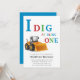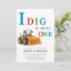 I dig at being one 1st birthday invitation in vibrant coloured text in blue red and green featuring a digger all on a white background ideal for a digger themed boys birthday. a simple simplistic but modern design, also available for instant downloads.
