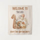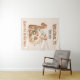 Fall First Birthday Welcome Sign Tapestry with Cute baby bear, big wooden number 1 and balloons for baby boy's 1st Birthday. The soft pastel colours, classic beige, grey and light brown give it a cosy autumn feel. Easily personalise all the text and enjoy a beary first Birthday celebration of your cute little baby bear. :) - Kate Eden Art