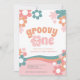This charming invitation features a delightful groovy daisy design in muted retro colours, making it a unique choice for your one-year-old's special day. Adorned with pink, teal, and orange daisies, along with a playful pink chequered pattern on the back, it perfectly captures the joy of this milestone celebration.