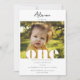 A beautiful 1st Birthday Party invitation featuring your custom photo and text. A modern arch will frame your beautiful photo creating a contemporary stylish first birthday party invitation. Customise the birthday age "one" to the birthday age and create a timeless birthday party invite for a boy or girl.
