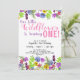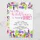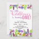 This pretty, colourful wildflowers themed birthday invitation is perfect for a baby girl's floral "Our Little Wildflower Is Turning One" party. It features a wildflower pattern on a white background, and text that you can customise with your own details.