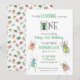 Pretty watercolor beetles decorated in hearts make this "lovebug" invitation sweet and unique for your little lovebug's first birthday celebration!