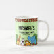 A safari themed personalised mug from your child's first birthday party. Complete with jungle animal illustrations of a giraffe, zebra, elephant and a tiger. Customise the details on this mug.