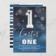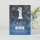 First Birthday Silver Balloon | Blue Party Invitation