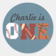 First Birthday Sports theme sticker. Personalise with the birthday boy's name. Matching invitation too: