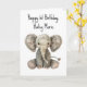 Cute plush elephant toy on a child's first birthday card. Name and sentiments can be changed. AI assisted graphic purchased with commercial use. Artwork: FreyasDigitalCrafts