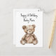 Cute watercolor teddy bear on a child's first birthday card. Name and sentiment can be changed. AI assisted graphic purchased with commercial use. Artwork: FreyasDigitalCrafts