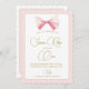 A cute first birthday invitation. A watercolor bow is the main feature of this very girly elegant birthday invitation.