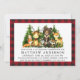 Watercolor Woodland Animals First Birthday Invitation. Baby Animals include Bear, Deer, Moose, Racoon, Bunny Rabbit, Fox and Owl with a backdrop of pine trees. Kraft Paper Style, Forest Green Pine, Red Buffalo Plaid.