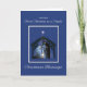 Celebrate their journey of love and togetherness with this special first Christmas card. Against a serene navy blue night sky, the Holy Family's humble stable and the radiant Bethlehem star symbolise the hope and blessings of the season. Share warm wishes with the couple as they celebrate their first Christmas together, illuminating their path with the light of Christ.