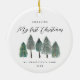 This rustic holiday ornament features "my first Christmas as aunt" typography with pretty script. Your custom names and personalized year are included. At the center are beautiful painted pine trees! A sweet holiday gift for a loved aunt. Shop this store for coordinating tshirt!
