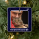 This custom first Christmas as a Cat Dad 2 photo 2 sided cat photo Christmas ornament features two of your own cat photos on a navy blue background and the year proclaiming this as your first year as the dad of a cat! This is the perfect keepsake to remember the special year that you and your fur baby became family!
