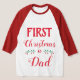 It says "First Christmas as Dad" in red modern fonts with Christmassy decorations, and it is part of a customizable Christmas family outfits collection (see my "Christmas matching Family Outfit & accessories" collection for coordinating items).