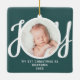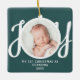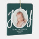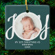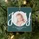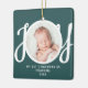 This keepsake "First Christmas As Grandma" photo ornament is decorated with the word 'JOY' in stylish script typography on a green background. Easily customisable.