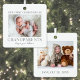 This square Christmas ornament is a simple and elegant way to celebrate your first holiday season as grandparents. It features a horizontal photo on each side, both framed with a clean white border around the edges for a polished look. On the front, "Our First Christmas As Grandparents" is written in classic serif fonts, with your names displayed at the bottom in a soft, handwritten script calligraphy for a personal touch.