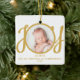 This keepsake First Christmas As Grandparents photo ornament is decorated with the word JOY in stylish gold script typography on a white background. Easily customisable.