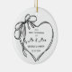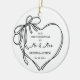 Celebrate your first Christmas together as Mr. and Mrs. with our beautifully crafted keepsake ornament. Featuring a charming hand-drawn heart and an elegant ribbon bow, this ornament is the perfect addition to your holiday decor. It serves as a heartfelt reminder of your love and commitment, making it an ideal gift for newlyweds or a cherished memento for your own tree. Create lasting memories with this exquisite ornament that captures the joy of your first holiday season as a married couple.