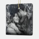 Elegant double sided christmas couple ornament featuring 2 photos either side, the saying "mr. & mrs." in a modern white outline font, your family name, and the year.