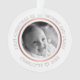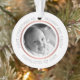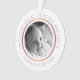 This modern personalised Christmas ornament features an elegant faux rose gold design. Personalise the name, year and photo. It is double sided. The front will have a black and white photo and the back has your original colour photo. This template works best with landscape format photos with the subject in the centre.