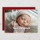 Add sparkle and joy to your holiday greetings with this bright “First Christmas” family card, designed to spread happiness.