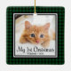 This lovely Kitten's 1st Christmas 2 photo ornament with a green buffalo check edge, the words "My 1st Christmas", your kitty's photos and name and the year will look beautiful on your tree. You'll cherish it and enjoy taking it out every year to put on your tree.