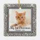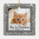 This lovely Kitten's 1st Christmas 2 photo ornament with a silver glitter edge, the words "My 1st Christmas", your kitty's photos and name and the year will look beautiful on your tree. You'll cherish it and enjoy taking it out every year to put on your tree.