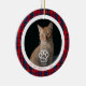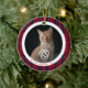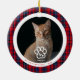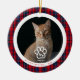 First Christmas Cat Photo Monogram Name Tartan Ceramic Ornament