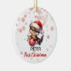 Personalised Christian ornament, cute Otter baby with Christmas hat, and bible quote on the back. Matthew 1:18 "Now the birth of Jesus Christ took place in this way. When his mother Mary had been betrothed to Joseph, before they came together she was found to be with child from the Holy Spirit."