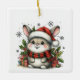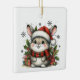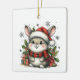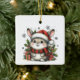 Whimsical illustration of a cute bunny in a Santa hat with gifts printed on a ceramic ornament commemorating baby's first Christmas. Text on back can be changed. AI assisted graphic purchased with commercial use. Artwork: RedHeronLighthouse