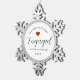 First Christmas Engaged Couples Script Keepsake Snowflake Pewter Christmas Ornament makes a perfect keepsake gift idea for a couple with wedding plans. The text is "our first Christmas engaged" in black trendy hand lettered script font mixed with simple black lettering. Couples first names are in lower case print and custom year. A small red heart is above "engaged."