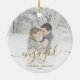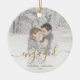 First Christmas Engaged Custom Photo Gold Script Ceramic Ornament