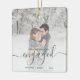 First Christmas Engaged Custom Photo Green Script Ceramic Ornament