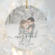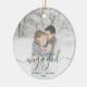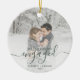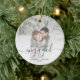 First Christmas Engaged Custom Photo Green Script Ceramic Ornament
