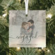 First Christmas Engaged Custom Photo Green Script Glass Tree Decoration